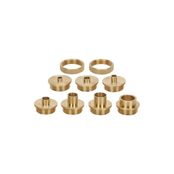 - Includes two locking nuts and one each of 5/16", 3/8", 7/16", 1/2", 5/8", 3/4" and 1" diam templates