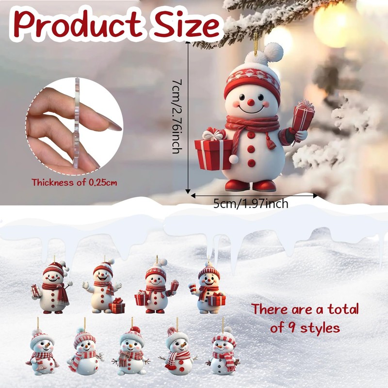 9 Pieces 2D Acrylic Snowman Pendants, Snowman Decoration, Small Christmas Acrylic Charms, Snowman Figure Small, DIY Charm Gift Accessories for Christmas Tree