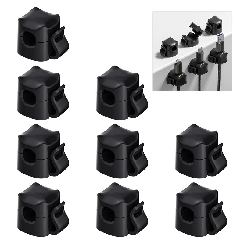 9 Pieces Desk Organizer, Cable Holder, Cable Organizer, Charging Cord Organizer, Wall Mount Bracket, Wall Remote Control Bracket (Black)