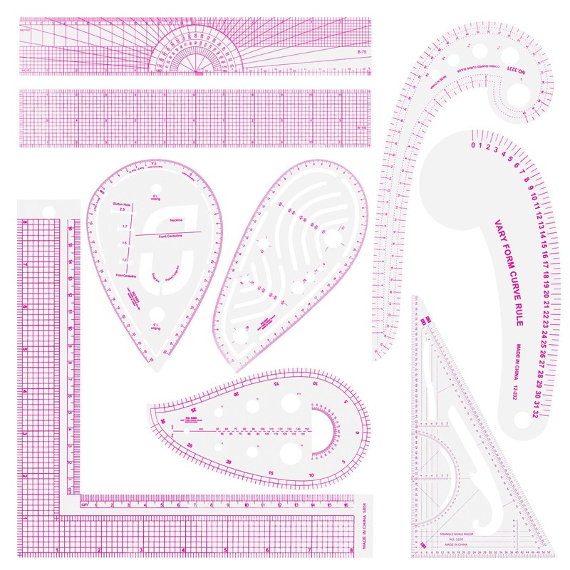 - Package Contents: You will receive 9 different styles of rulers including 1 triangle ruler, 1 comma ruler, 2 semicircle rulers, 2 multi-function rulers, 1 L-shaped square ruler, 2 bevel transparent rulers 2 types,different lengths to meet your different sewing or measuring needs