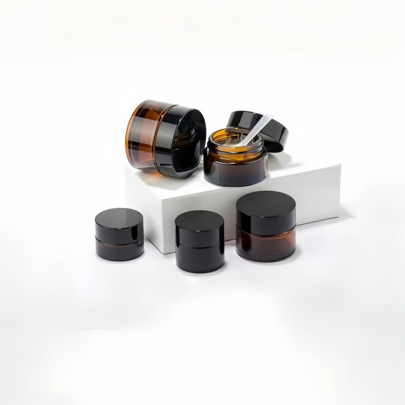 9 Pss 5g Small Glass Jars with Lids and Inner Liners,Amber Cream jar Cosmetic Container Storage Jars,Refillable Travel Jars Makeup Sample Containers for Lip Balm, Eye Cream,Lotion,Cosmetic