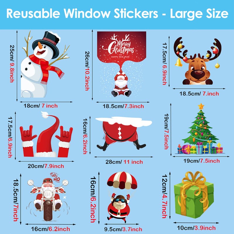 - 🎄Wide Application: Our Christmas window stickers are eye-catching decorations to enhance the Christmas atmosphere! You can use them to decorate the smooth surface, such as windows, mirrors, glass door etc. Great for retail shop windows, office, restaurant, home decorations.