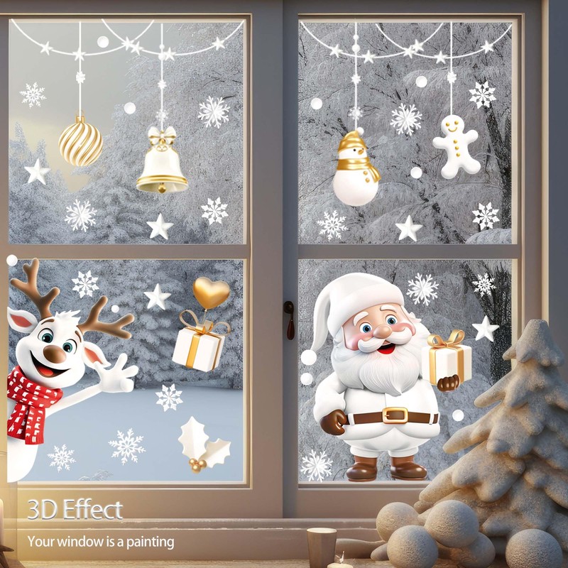 - Double Sided Christmas Window Clings - These window stickers are double sided pattern,you can see the window stickers when you stick them on a clear glass window, whether it is indoor or outdoor. Add more Christmas atmosphere to your space.