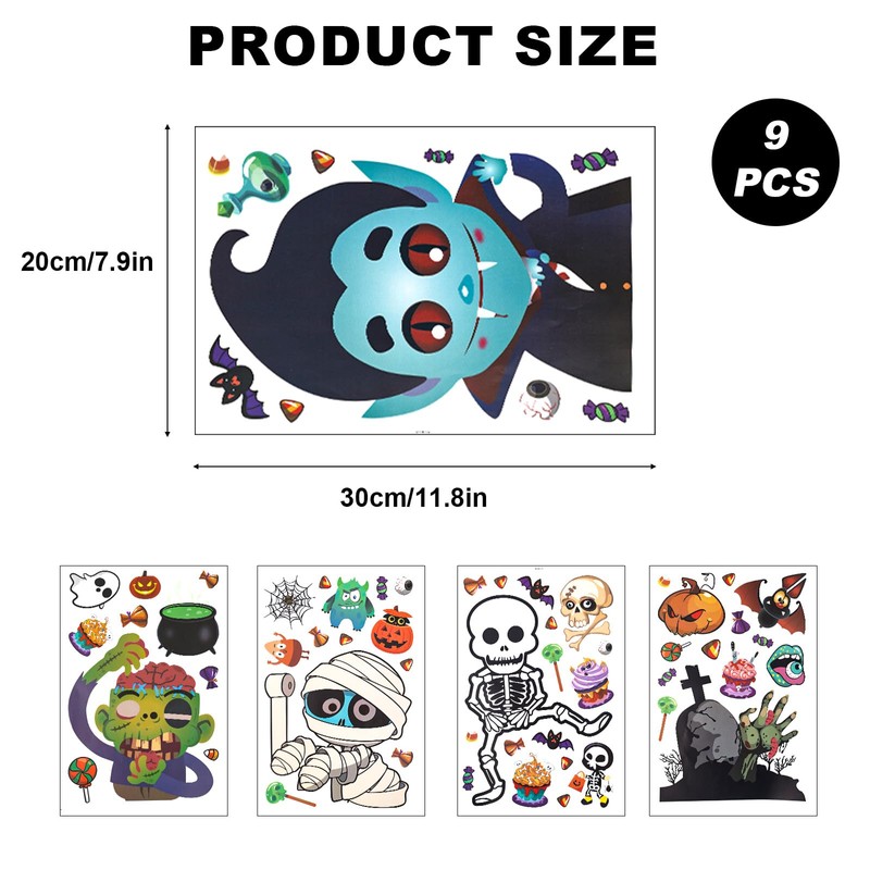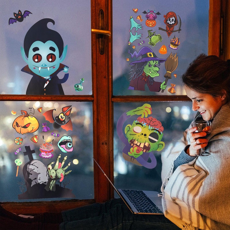 9 Sheets Halloween Window Decorations Sticker, 115 Cartoon Patterns Halloween...