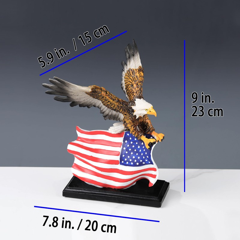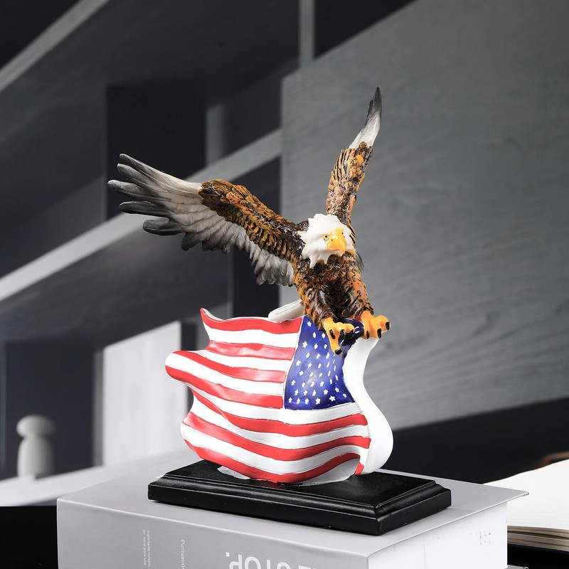- 【Elegant Home Decor】- This bald eagle with star spangled banner flag statue win with the unique design and innovative shapes, suitable to be placed anywhere in your home, bookshelves, collector cabinets, display stand, bedside cabinets, living rooms, TV cabinets, coffee tables, etc., wherever they are placed, they will be an eye-catching presence.