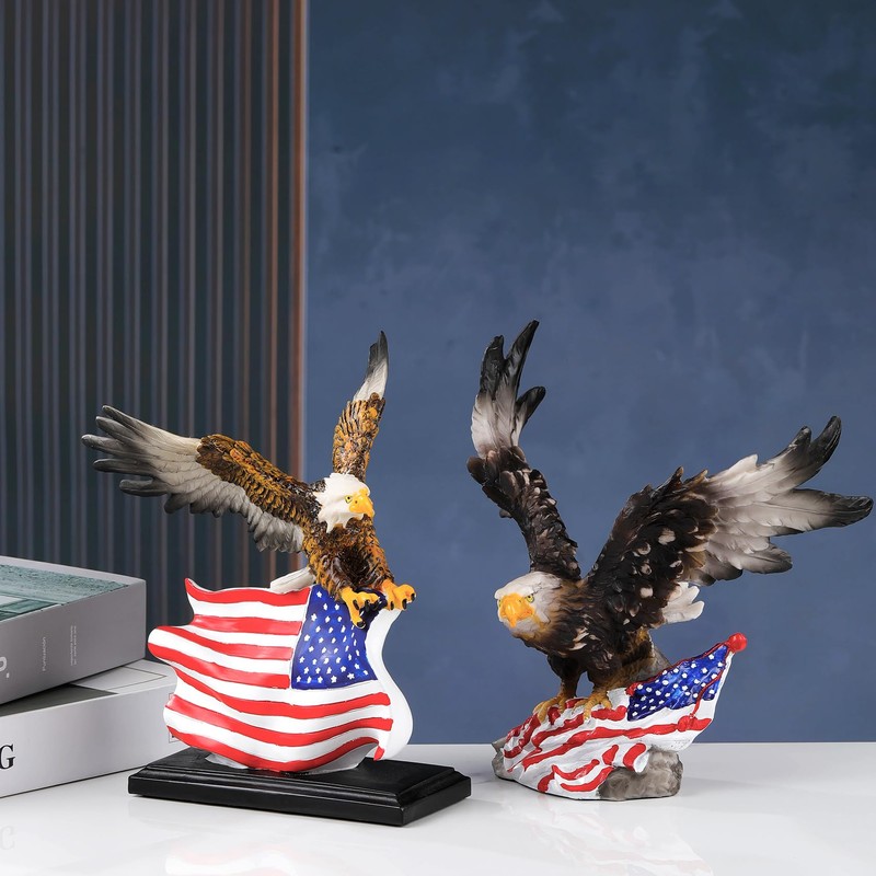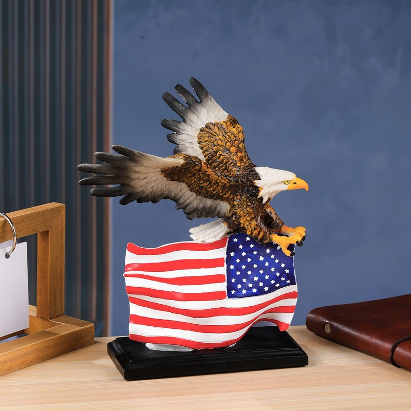 - 【Elegant Home Decor】- This bald eagle with star spangled banner flag statue win with the unique design and innovative shapes, suitable to be placed anywhere in your home, bookshelves, collector cabinets, display stand, bedside cabinets, living rooms, TV cabinets, coffee tables, etc., wherever they are placed, they will be an eye-catching presence.