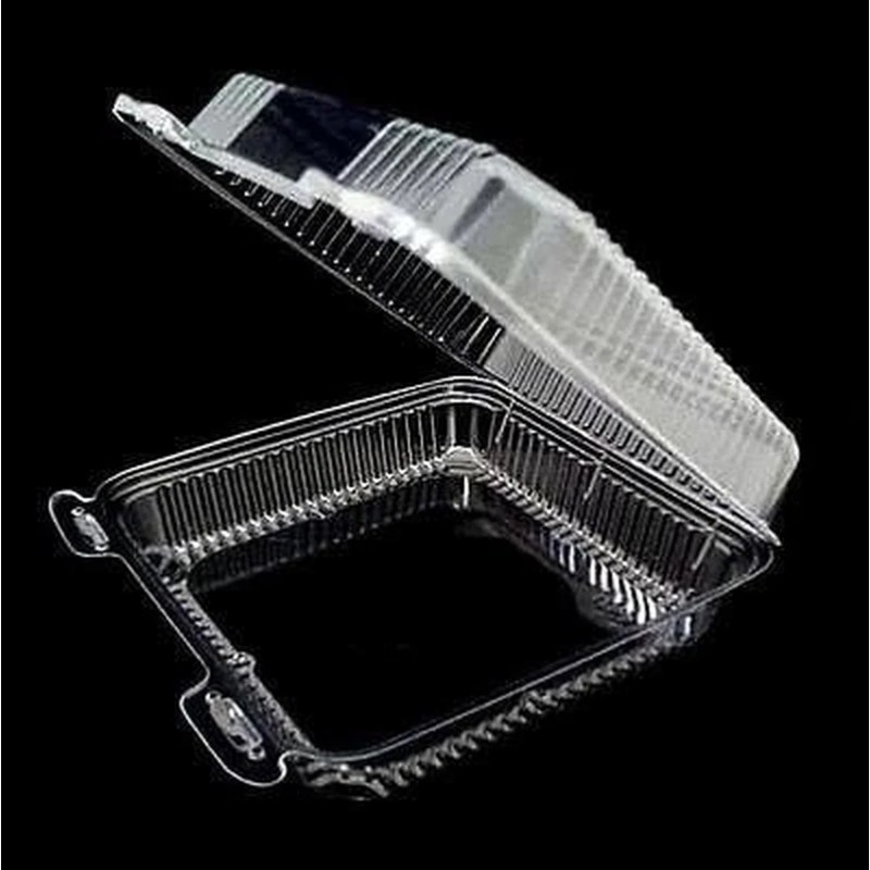 Durable 9" x 8-5/8" x " container 9" large clear-hinged lid -compartment (see exact dimensions below) pack of 25 product features: dimensions: 9" l x 8-5/8" w x " h capacity: 64 oz clear see-through plastic - cale food presentation , sturdy containers, stack well ideal for salads, pastries, cakes, danishes, sweets, party favors and more! ou kosher certified, made in theusa proudly made in the usa by durable packaging