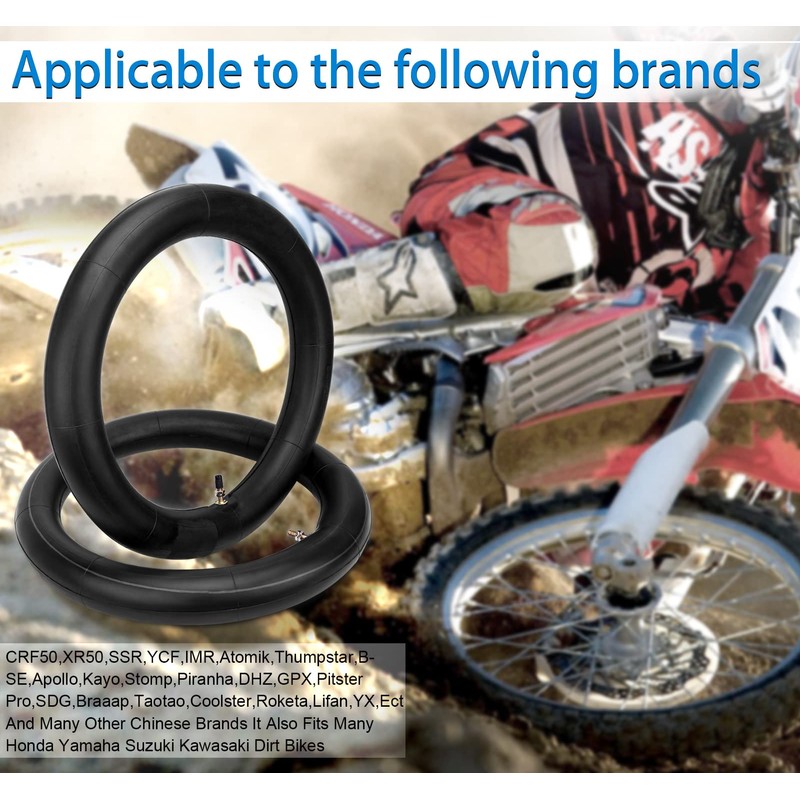 - 14" Rear Inner Tube Is Widely Used On Many Chinese 125cc 140cc 150cc 160cc Bigfoot Pit Dirt Bikes. Such As CRF50,XR50,SSR,YCF,IMR,Atomik,Thumpstar,BSE,Apollo,Kayo,Stomp,Piranha,DHZ,GPX,Pitster Pro,SDG,Braaap,Taotao,Coolster,Roketa,Lifan,YX,Ect And Many Other Chinese Brands It Also Fits Many Honda Yamaha Suzuki Kawasaki Dirt Bikes.
