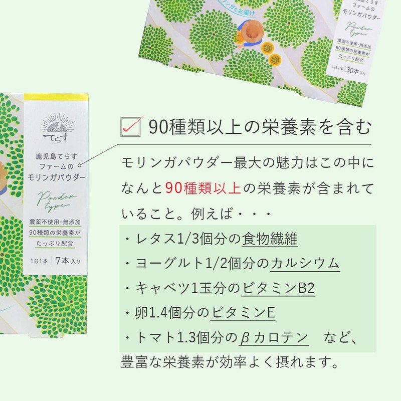 鹿児島てらすファームのモリンガパウダー 無添加 無農薬【90種類以上の栄養素】サプリ スーパーフード 粉末 スティック (30本入り)
