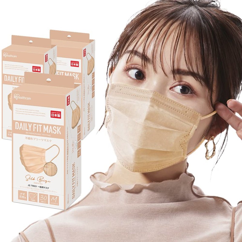 [アイリスオーヤマ] 【90枚セット】 マスク 不織布 プリーツマスク カラーマスク デイリーフィットマスク ふつうサイズ 秋用マスク チークマスク 30枚入り PN-DC30M