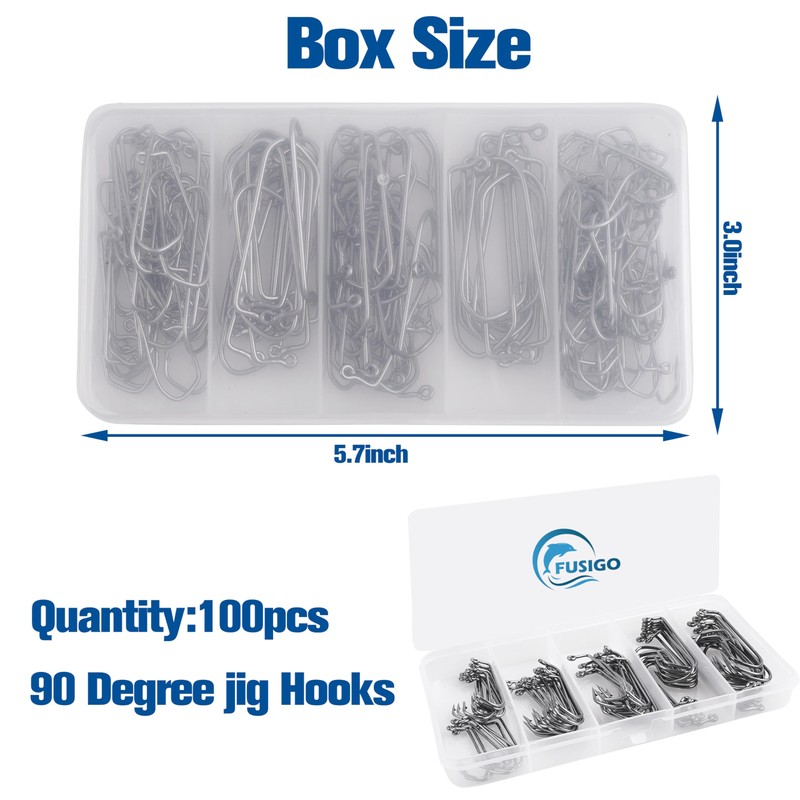 - 【Ultimate Design】90 degree jig hooks with ringed eye to tie line, special barb design, long shank, forged sharp needle point, non-offset, triangle bend, great for catch and release