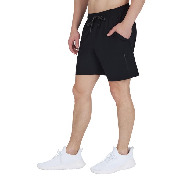 90 Degree by Reflex Mens Quick Dry Workort Short 7" Side Pocket Shorts with Drawstring - Black - Small