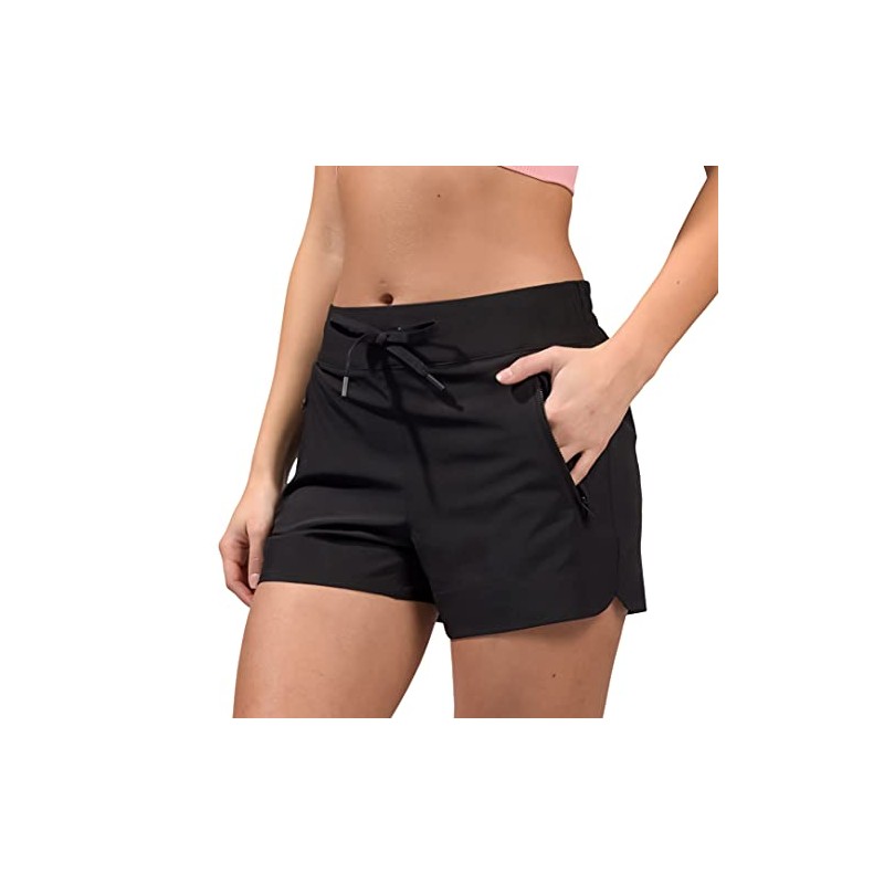 • Lightweight and Comfortable. Find full comfort in these summer shorts. Constructed with a super breathable fabric and elastic waistband, you’ll never want to take them off! The ladies shorts fall at the perfect length, with the inseam approximately five inches from crotch to edge of cuff. The woven material of these womens shorts are made from 88% Polyester and 12% Spandex.
