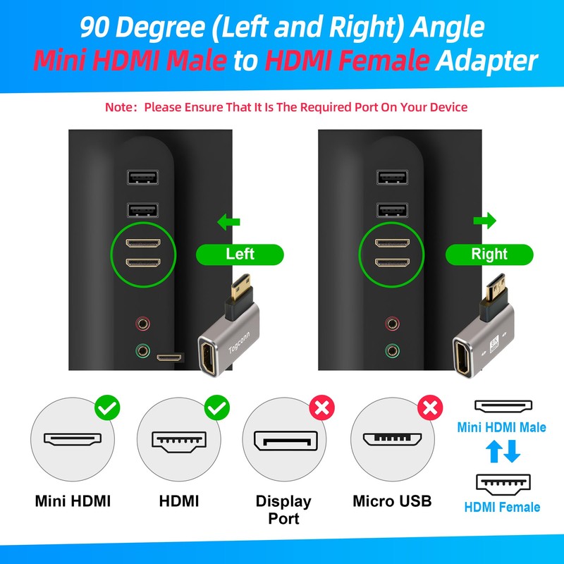 | Color: | (Left & Right) Mini HDMI Male to HDMI Female |