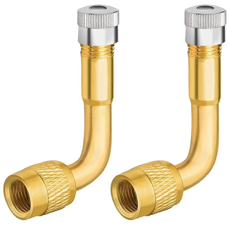 バイク 空気入れ アダプター バルブ延長チューブ バイク用エアーバルブ 90°エクステンション L型 真鍮 エアバルブ 原付バイク用 米式バルブ バイク/自転車/トラック/電気自動車/自動車用 (2個入り)