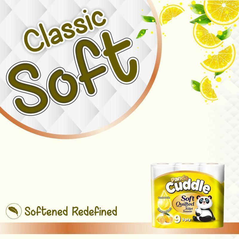 90 Panda Cuddle Soft Quilted Toilet Rolls-Enriched with Lemon Zest Fragrance- 3 Ply Toilet Tissues 10*9 Pack Lemon Yellow Personal Wipes