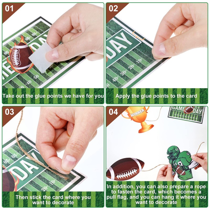 - How to Use Football Cut out: the adhesive dots allow you to stick mini football cutouts on walls, doors, tables, and chairs, also can attach the sports cutouts on the ropes as a football banner decoration, even as a teamwork game for students, with the football party cutouts, can DIY different ornaments that will inspire imagination hand eye coordination