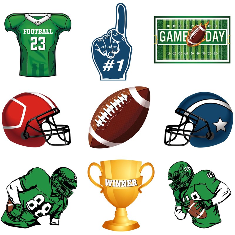 - Football Theme Cutouts Design: small paper football cutouts are colorful and made of quality durably cards no toxic, no odor, and football cutouts decorations are reusable with colorful printing on both sides you can use them for party supplies which can easily catch the eye of your friend
