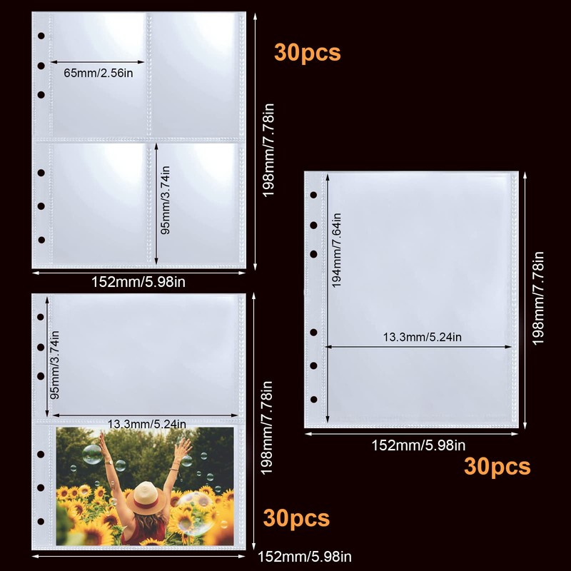 - 【3 Kinds of Pages】: We offer 90 album pages in 3 styles, including 1 pocket, 2 pockets and 4 pockets, allowing you to store photos of different sizes, 1 pocket for 7 x 5 inches photos, 2 pockets for 5 photos x 3.5 inches photos and 4 pockets for 2 x 3 inches photos for your added convenience.