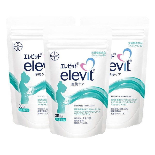 【公式】 エレビット 産後ケア 産後 授乳期 サプリ 90粒×3袋 90日分 葉酸 ビタミン ミネラル 鉄 分 カルシウム マルチビタミン 3ヶ月 パウチ バイエル薬品