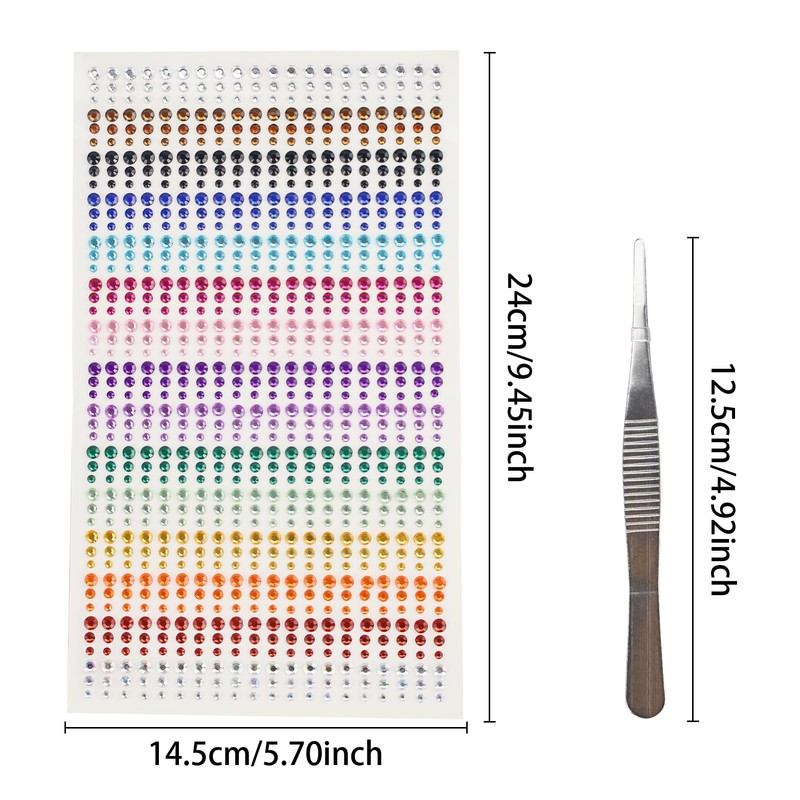 900 Stück Strass-Aufkleber mit Pinzette, 3 mm, 4 mm, 5 mm, bunte, selbstklebende Strasssteine, runde Kristall-Edelsteine, Blatt für DIY-Handwerk, Dekoration, Strasssteine für Make-up, Strasssteine,