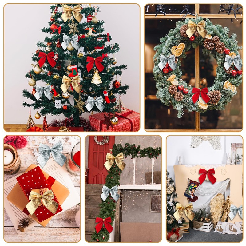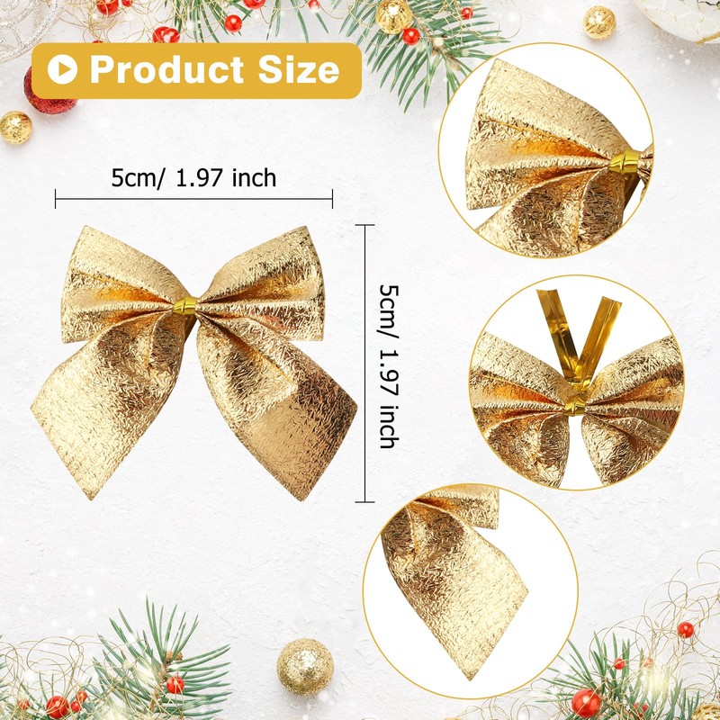 - [ Size Information ] Each Christmas decorative bow measures about 5 x 5 cm/ 1.97 x 1.97 inches, shiny and generous, the right size is convenient for you to decorate and use, you can hang them anywhere you want.