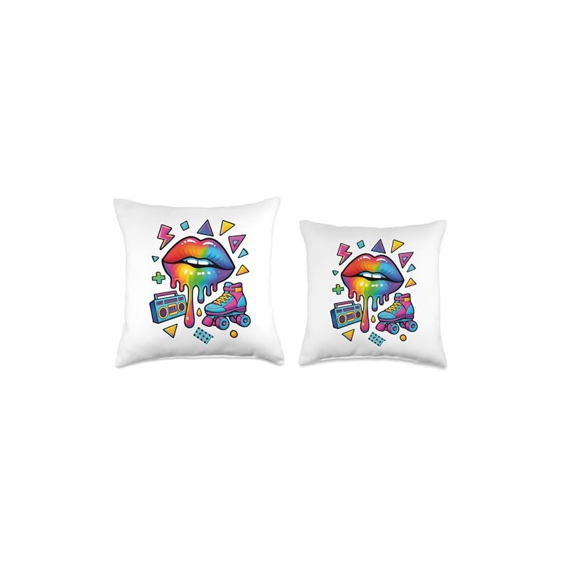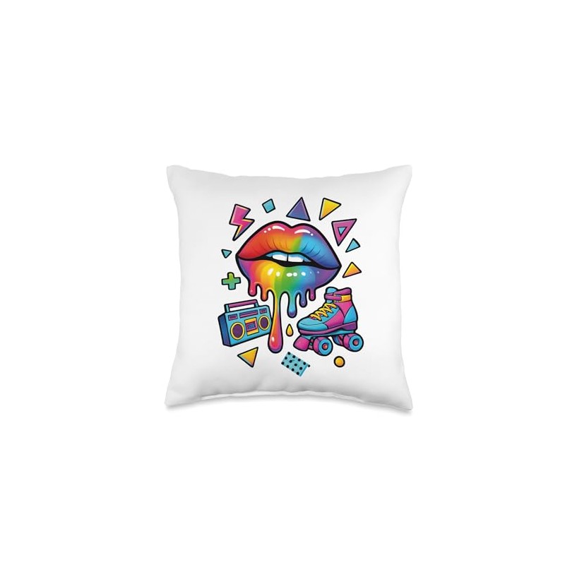 90s Retro Pop Art Rainbow Lips Nostalgia Costume 90s Throw Pillow