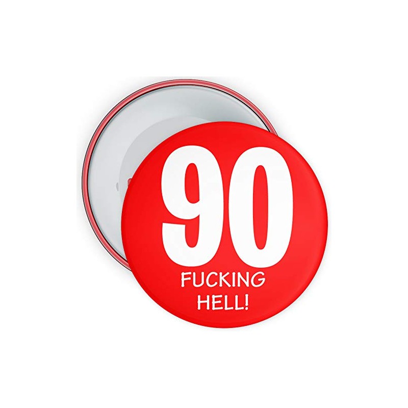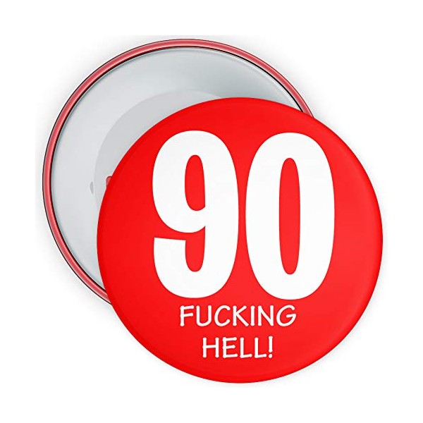 90th Birthday Badge 75mm Pin Button Novelty Red (90 Years Old)