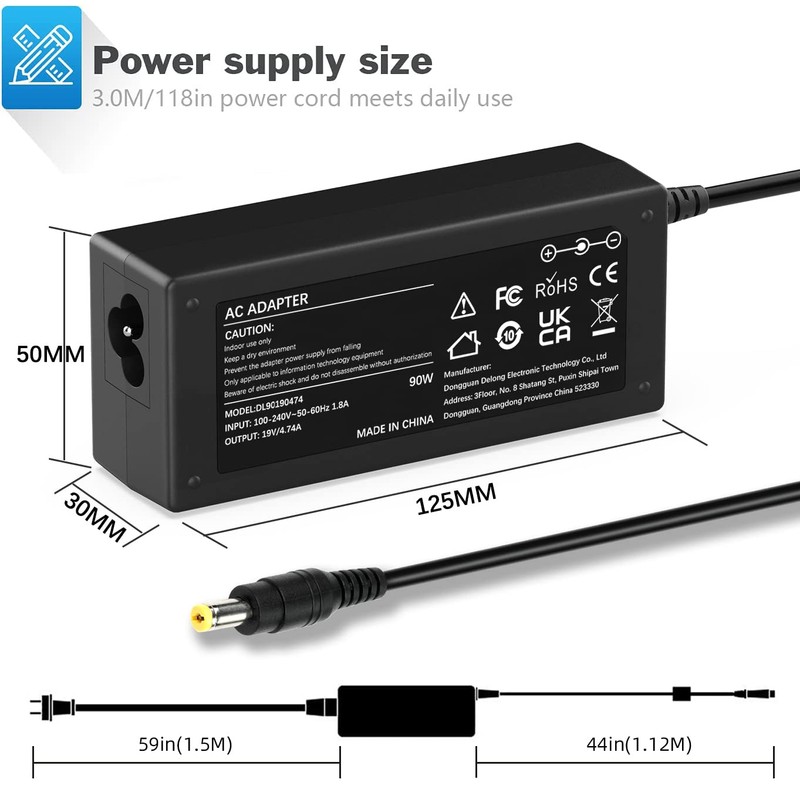 - 90W Acer charging cables have passed strict quality tests to ensure excellent performance. It has passed UL / CE / FCC / RoHS tests and has multiple protection functions such as overvoltage, overcharging, overheating and short circuit. We have 24-hour customer service!