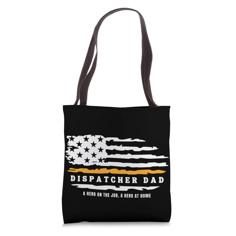 911 Police Dispatcher Dad, Thin Gold Line Flag for Sheriff Tote Bag