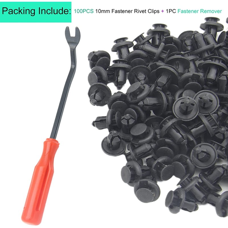 - >>[Packing Include] : 100PCS 10mm Fastener Rivet Clips,1PC Fastener Remover; Clips Head Diameter: 20mm; Stem Length: 13mm; Fits Hole Size: 10mm
