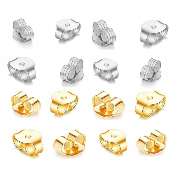 925 Gold/Silver Stud Backs, 16 Piece Set, Strong and Durable, Suitable for Various Earrings, with Safety Design