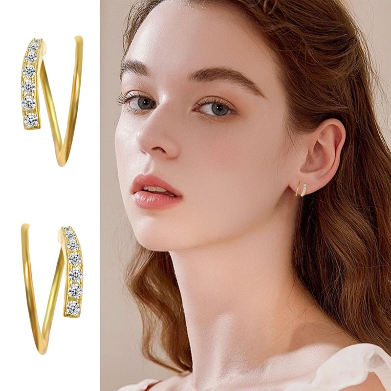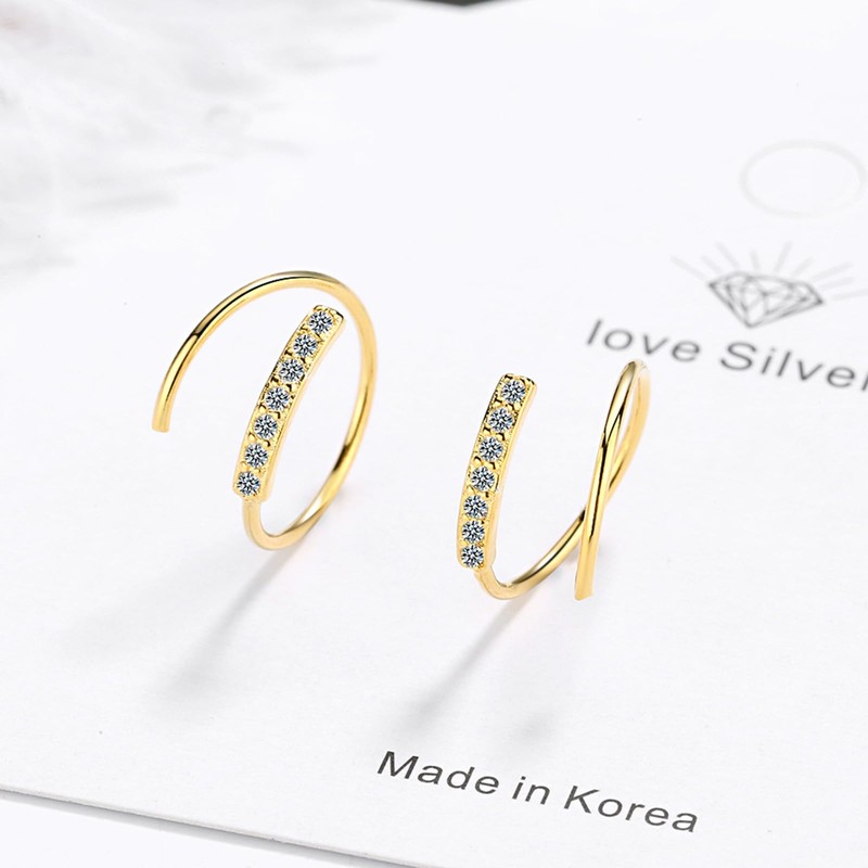 925 Sterling Silber Doppel Twist Hoop Ohrringe für Damen, Hypoallergen 14 Karat Vergoldet Winzige Cubuic Zirkonia Spiral Einfädler Half Creolen Ohrringe CZ Crawler Ohrringe für Einzelnes Piercing