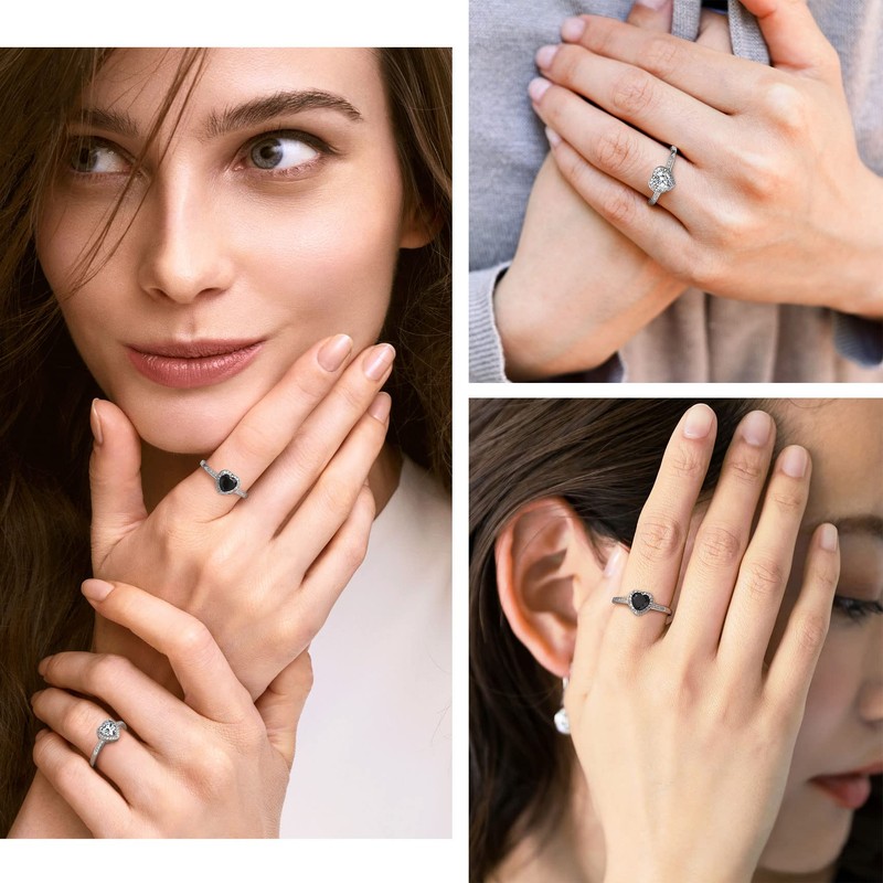 - đź’“1 Ct Solitaire Heart Gemstone Ringđź’“ 6.5mm wide Black Zirconia embellished with 1mm white Cubic Zirconia , exquisitely inlaid in high polished 925 Sterling Silver 2mm wide Bands. This heart diamond ring is undying fashion among the trend-conscious. It will create an elegant look arround your fingers and illuminate your hands.It is shiny and classic which will make you special, so stylish to catch your audience's eyes and stand out the crowed.