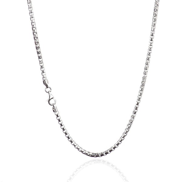 925 Sterling Silver 3.30 mm Round Box Chain Necklace With Pear Shape Clasp-RHODIUM FINISH