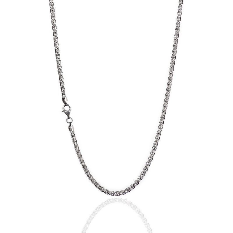 925 Sterling Silver 3.30 mm Spiga-Wheat Chain Necklace With Pear Shape Clasp-RHODIUM FINISH