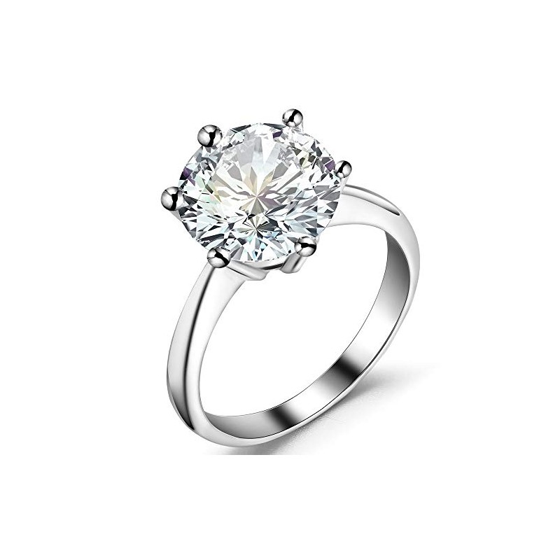 925 Sterling Silver 4 Carat Cubic Zircon Simulated Diamond Solitaire Engagement Ring (O, 4)
