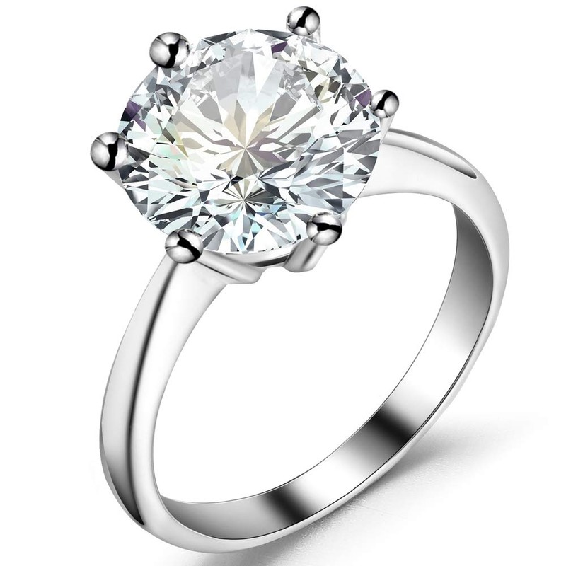 925 Sterling Silver 4 Carat Cubic Zircon Simulated Diamond Solitaire Engagement Ring (O, 4)