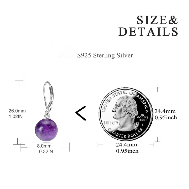 925 Sterling Silver Amethyst Leverback Earrings Dangle Drop Jewelry Gifts for Women and Girls