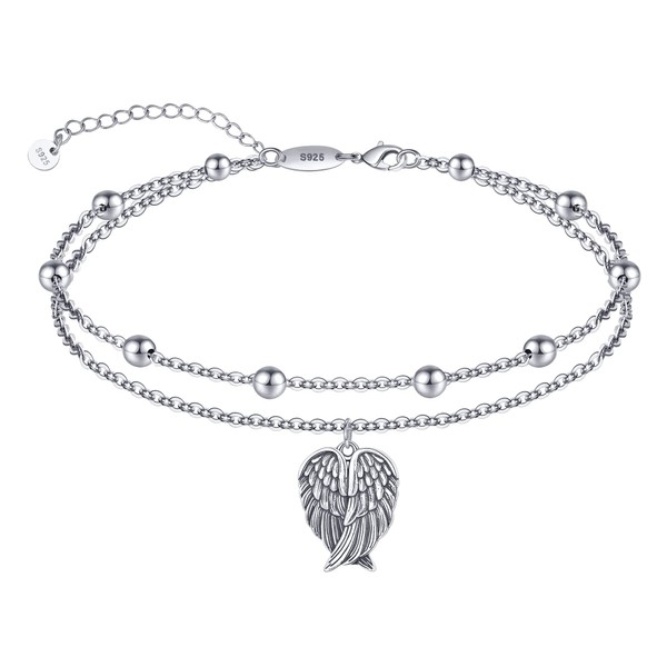 925 Sterling Silver Anklet Angel Wings Double Layer Anklet for Women Sterling Silver No Gemstone One Size Sterling Silver No Gemstone, Sterling Silver, Without gemstones