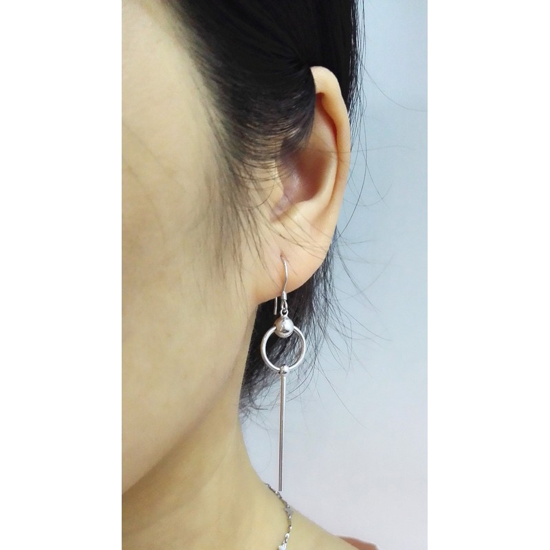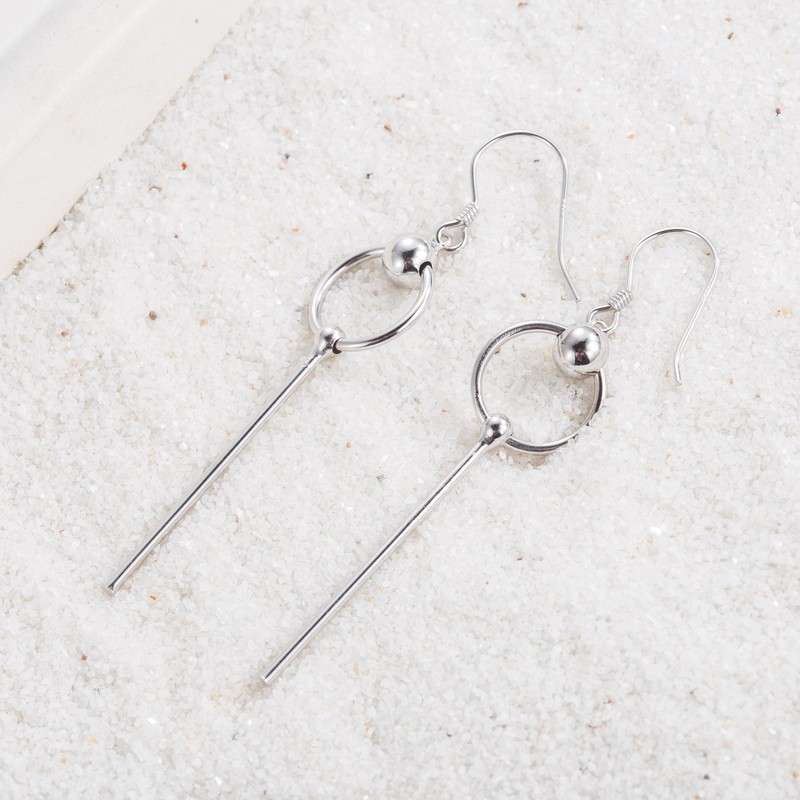 925 Sterling Silver Bead with Long Line Bar Dangle Earrings