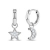 925 Sterling Silver Celestial Clear Cubic Zirconia Moon & Star Dangle Hoop Earrings For Young Girls and Preteens 12mm - CZ Earrings for Star Gazing Little Girls