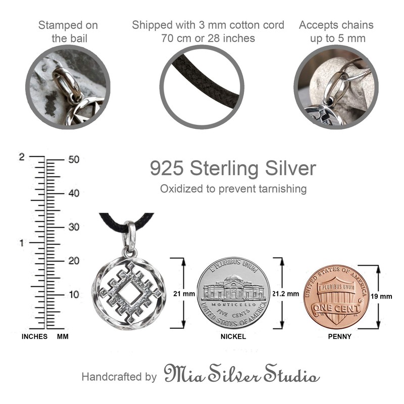 - Measurements: Celtic Symbol Pendant Size: diameter 7/8" (21 mm); shipped with free high quality cord 28" (70 mm); Can be adjusted to a stylish women’s choker or to wear it as a long men’s necklace