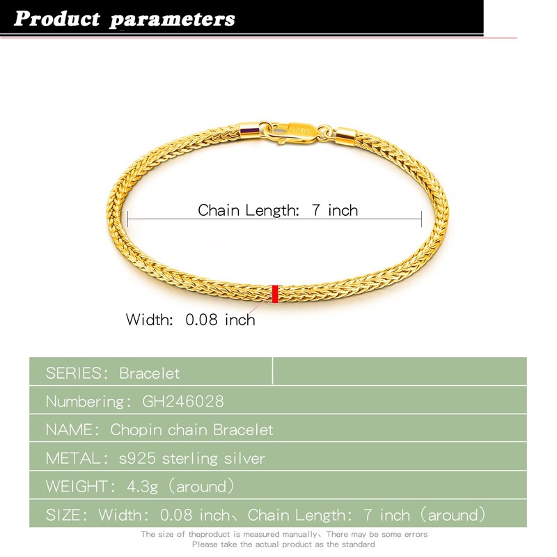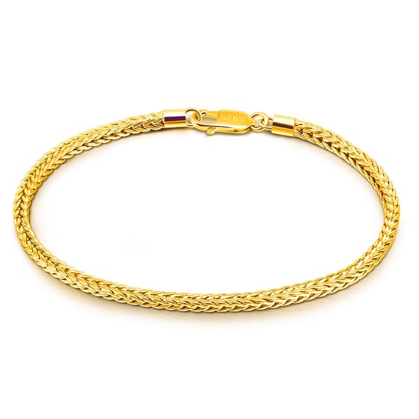 925 Sterling Silver Chopin Chain Bracelet Women Bohemian Stackable Figaro/Box/Snake Bracelet 2MM 5 "5.9" 6.3 "6.7" 7 "7.5" 8" Girls & Boys Jewelry Gift (Gold, 6.3)