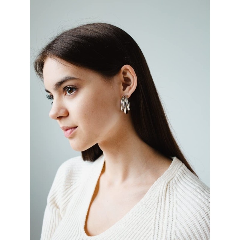 - Chunky Hoop Earrings MateraI: The chunky hoop earrings posts and body are ALL made of 925 sterling silver. Hypoallergenic, with no fading. The Best Choice for Sensitive ears. These triple chunky hoops are surface plating18K Real Gold / White Gold for a long-lasting brilliant finish and will not fade over time. The surface is polished with multiple layers, elegant and beautiful.