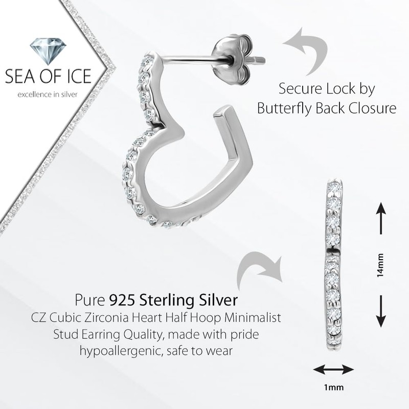 925 Sterling Silver CZ Cubic Zirconia Heart Half Hoop Minimalist Stud Earrings for Women Girls