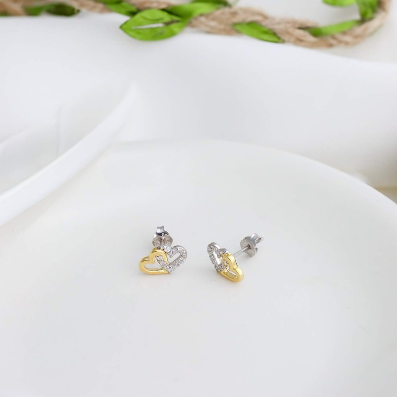 925 Sterling Silver CZ Interlocking Double Heart Stud Earrings for Women (Two-Tone (Silver & Gold))