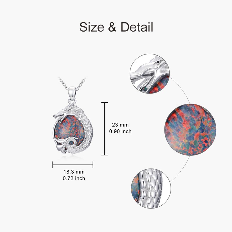 925 Sterling Silver Dragon - themed Large Opal Pendant Necklace for Women