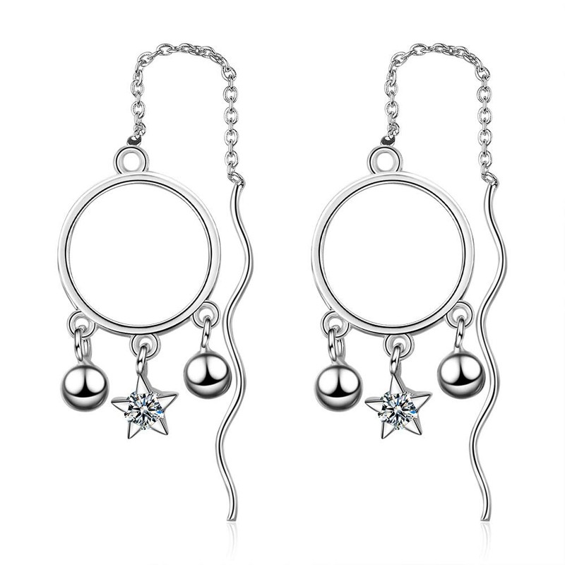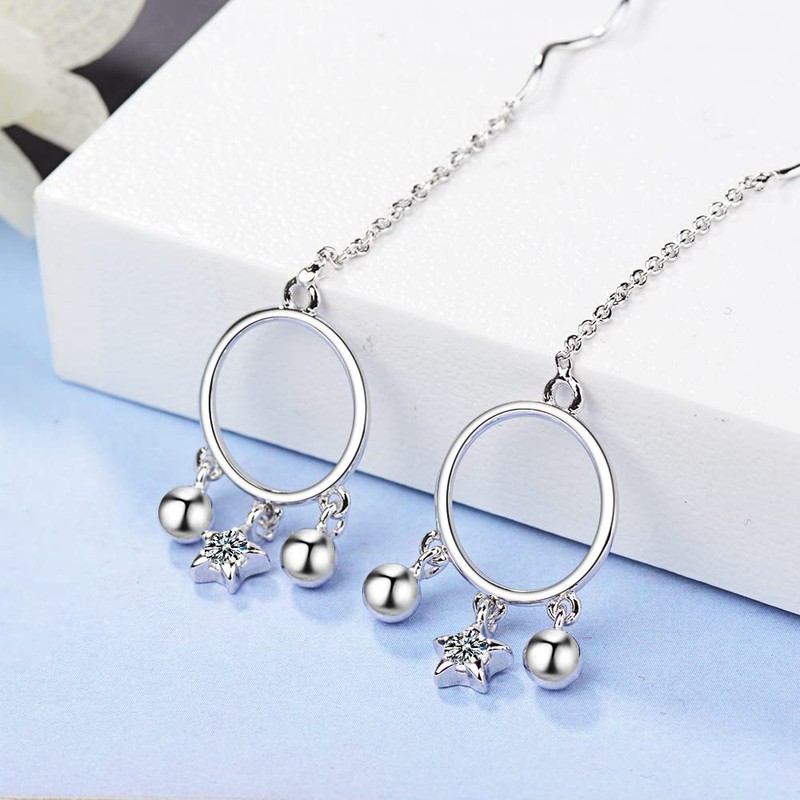 925 Sterling Silver Dreamcatcher Stars Tassel Needle Drop Threader Pull Through Earrings for Womens Dream Catcher Dangle Earring Bohemian Jewelry Gift (Silver)