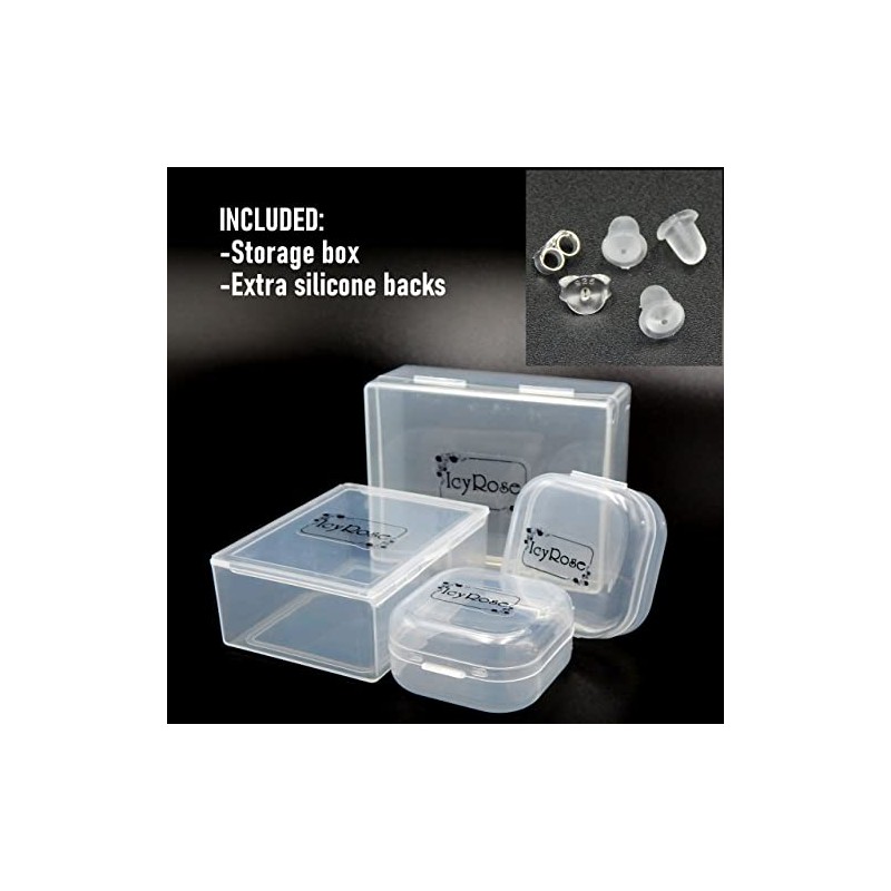 - Material: 925 Sterling Silver ( Post Length 9-10mm / 3/8" ) (conversion : 1 inch = 25.4mm or 1mm = 0.0393 inch) (comes with Sterling Silver Butterfly Push Back , Clear Silicone Bullet Clutch Ear Nuts for Earring Safety Backs and Little Plastic stored box.)